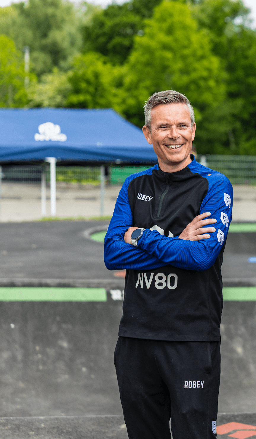 Bart van Wensen is projectleider van NV80. Dit programma, dat onderdeel is van Stichting Pendrecht Vooruit, laat jongens en meiden van 11 tot 18 jaar kennismaken met urban sporten, waaronder 3x3 basketbal en straatvoetbal, maar nu dus ook alles wat je op een pumptrack kunt doen.
